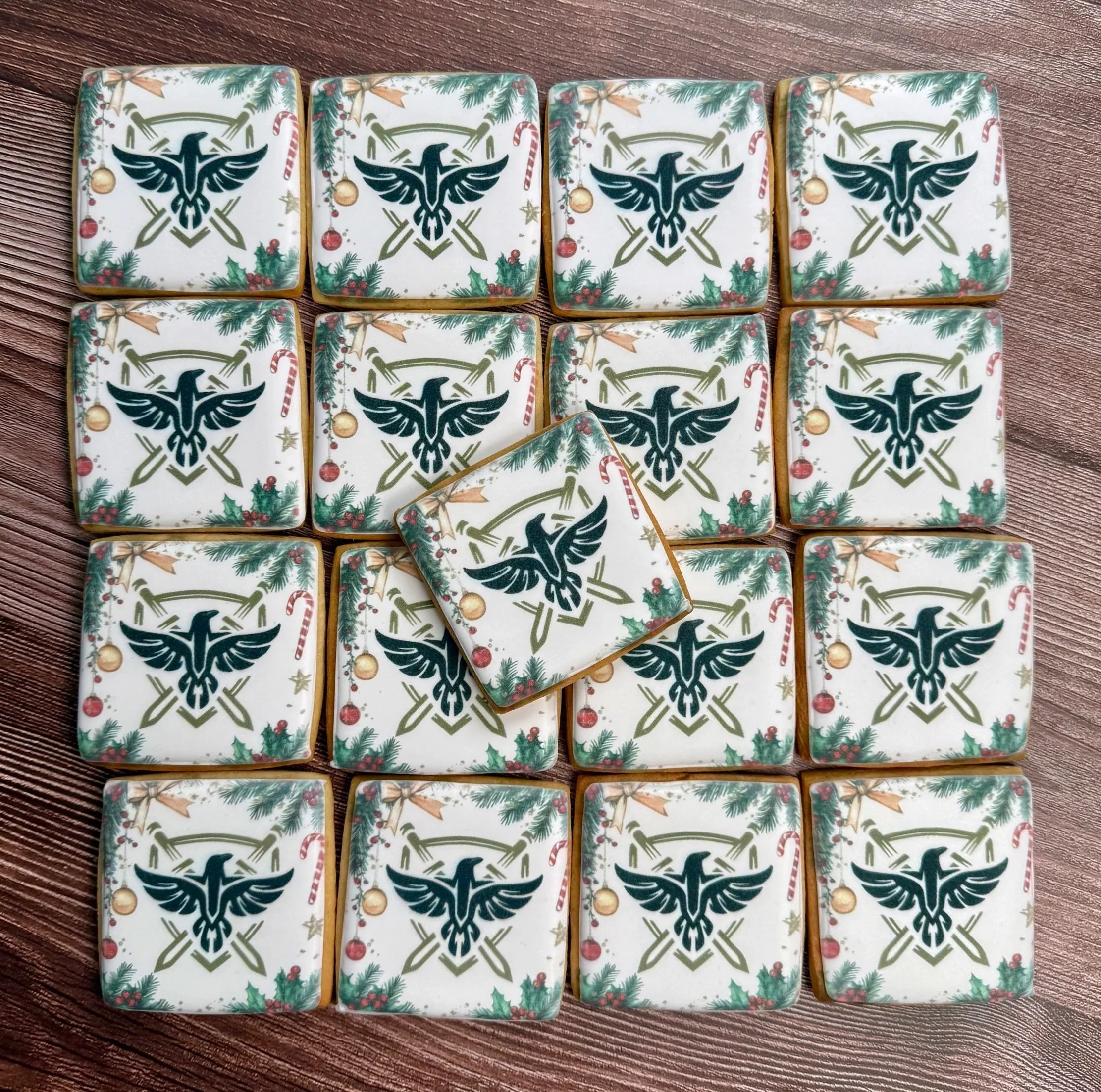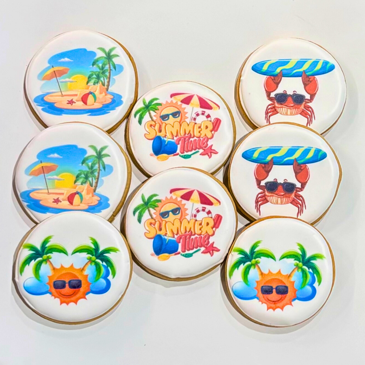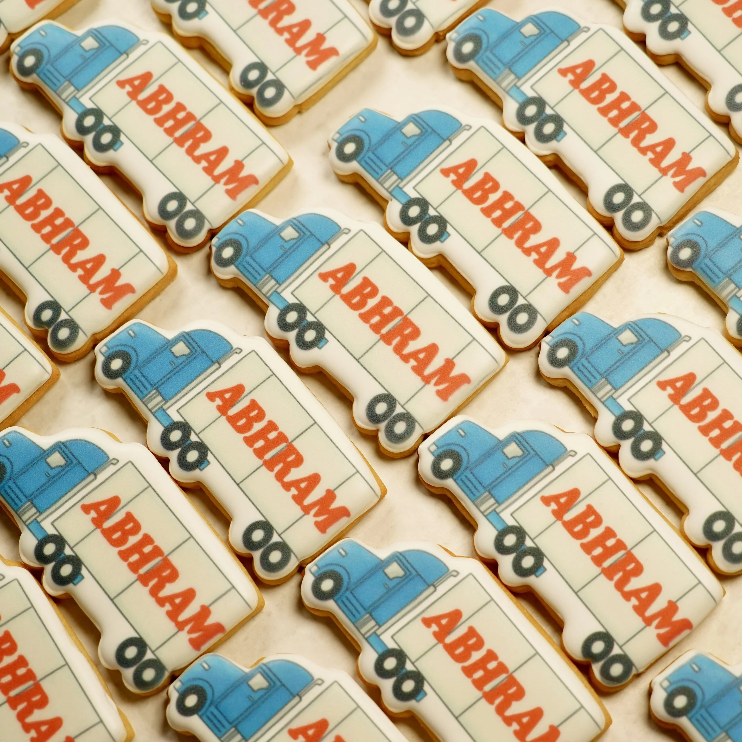We use our edible printer to silk screen almost any image on to an iced sugar cookie